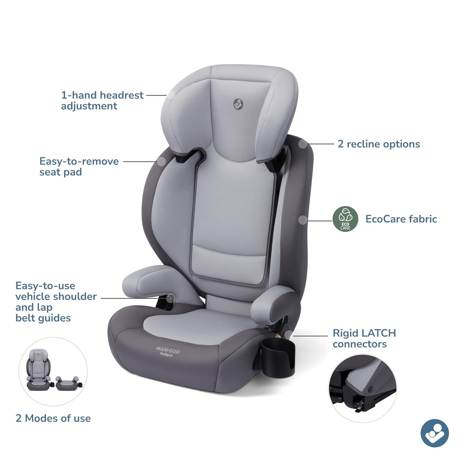 Maxi-Cosi RodiSport 2-in-1 Booster Car Seat – High-Back & Backless | 7-Position Headrest | LATCH System | Sea Salt